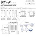 Post Lengths 60" Length For 36" Height Fence 72" Length For 48" Height Fence 84" Length For 60" Height Fence Style 3 Pool Code Approved Heights: Styles 3A, 3B, 3C & 3D Straight Open & Closed Top Designs: 60" Be Sure To Check Your Local Pool Codes Before Purchasing. For all downloadable, printable .pdf specification sheets visit our Installation, Assembly & Specifications Page. Our Residential Vinyl Fence product line is fabricated from PVC (Polyvinyl Chloride) material and is a rust-free product. This makes our Residential Vinyl Fence perfect for installations around pools and other wet areas. All of our Vinyl Fencing is fabricated and assembled without the use of brackets. This allows for easy assembly and increased durability. We use the latest UV protection technology to ensure a lasting maintenance-free finish that is backed by our limited lifetime warranty. All of our Fence Sections, Posts and Gates are Made in the USA with American Materials and American Labor.